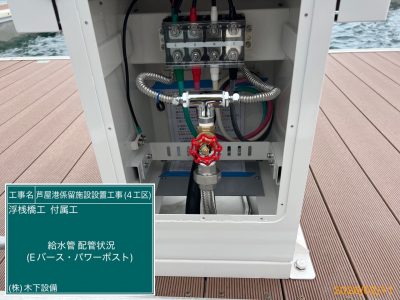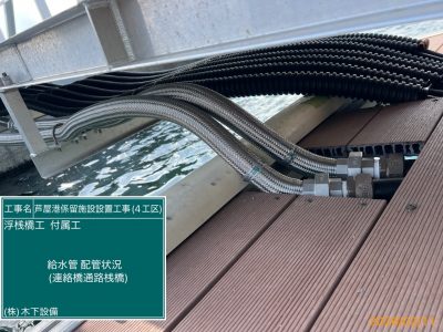 本工事は、浮桟橋工事に関連する付属設備工事となります。